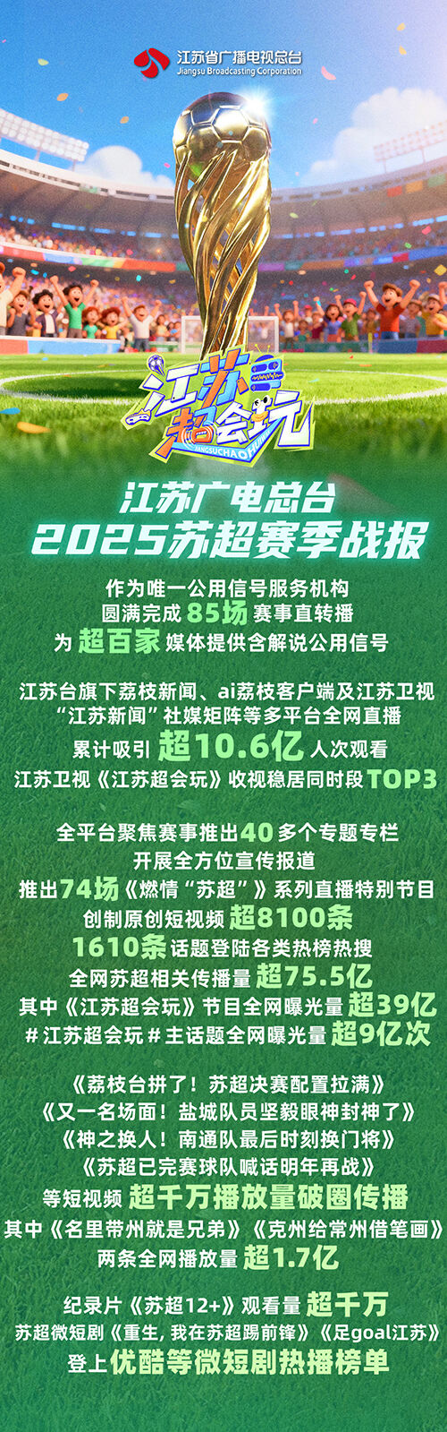 全情投入 勇于突破 屢創(chuàng)佳績(jī) —江蘇廣電總臺(tái)2025“蘇超”傳播工作圓滿(mǎn)收官